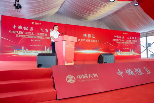 7月1日,中城大有產(chǎn)業(yè)集團(tuán)有限公司(下稱中城大有產(chǎn)業(yè)集團(tuán))在廣東三水、江蘇海陵、浙江諸暨三地舉行了獨(dú)立儲能電站聯(lián)動竣工并網(wǎng)儀式。這標(biāo)志著中城大有產(chǎn)業(yè)集團(tuán)在新能源儲能產(chǎn)業(yè)發(fā)展已經(jīng)取得重要階段性成果,為成為儲能生態(tài)行業(yè)領(lǐng)跑者奠定了堅(jiān)實(shí)的項(xiàng)目基礎(chǔ)。來自三地多位政府領(lǐng)導(dǎo)、業(yè)內(nèi)專家學(xué)者、企業(yè)代表、媒體代表等嘉賓共同見證了這一重要時刻。