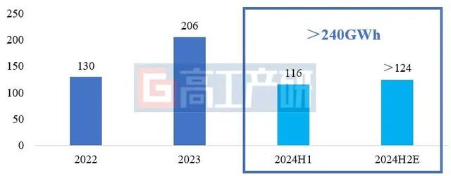 根據(jù)高工產(chǎn)研儲能研究所(GGII)調(diào)研統(tǒng)計,2024年上半年中國儲能鋰電池出貨量116GWh,相較2023年上半年87GWh,增長41%。其中一季度出貨量40GWh,二季度出貨量76GWh。GGII預(yù)計2024年全年儲能鋰電池出貨量超240GWh,其中電力儲能將成為2024年增長最主要驅(qū)動力;戶用/通信/便攜式儲能市場需求將有所放緩,全年出貨低于預(yù)期。