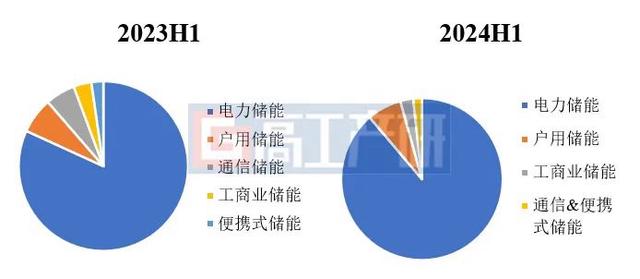 2023H1-2024H1中國儲能鋰電池出貨量(按細分領(lǐng)域,GWh)