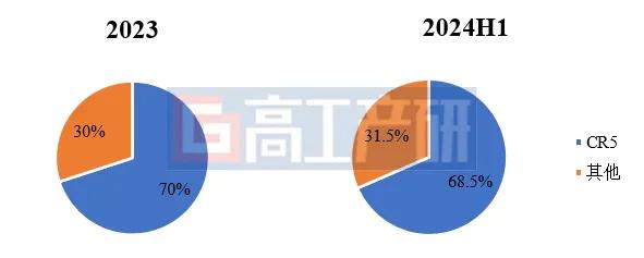 2023-2024H1國內(nèi)儲能鋰電池出貨CR5格局變化(%)