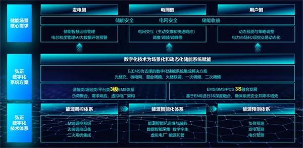 弘正儲能自成立以來,就把數(shù)字化作為儲能解決方案的切入點,形成了能源調(diào)控、能源智能化和能源預(yù)測三大數(shù)字化儲能體系,結(jié)合自主研發(fā)的EMS能量管理系統(tǒng)強大的數(shù)據(jù)采集、轉(zhuǎn)發(fā)及邊緣計算能力,能夠充分滿足虛擬電廠對站點的數(shù)據(jù)采集、策略控制的各類要求,保障儲能設(shè)備能夠順暢地接入虛擬電廠平臺。