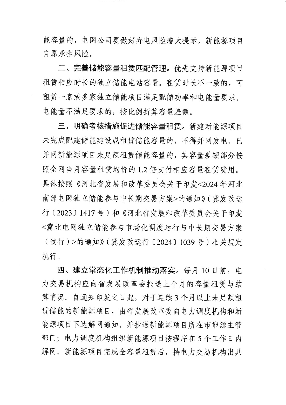 獨立儲能可在同一省級電網(wǎng)區(qū)域向新能源項目出租容量,不受市域限制。送出受限地區(qū)新能源項目跨區(qū)域租賃儲能容量的,電網(wǎng)公司要做好棄電風(fēng)險增大提示,新能源項目自愿承擔(dān)風(fēng)險。