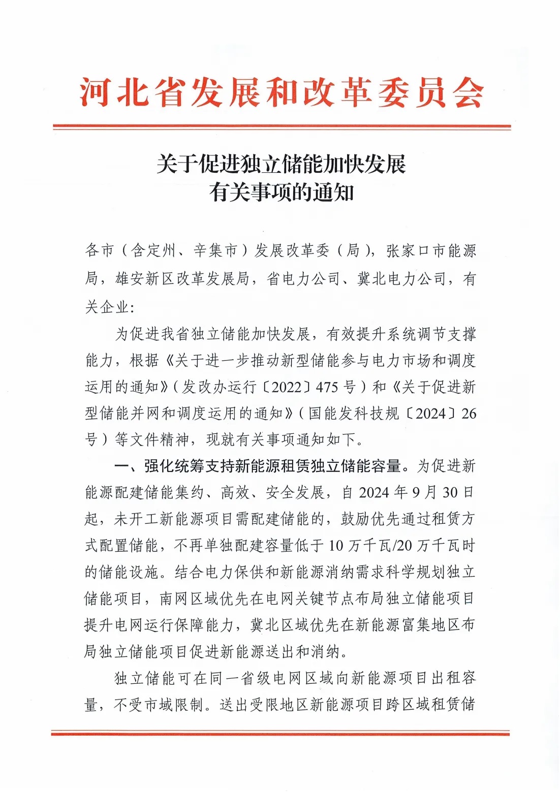 8月1日,河北省發(fā)改委發(fā)布《關(guān)于促進獨立儲能加快發(fā)展有關(guān)事項的通知》,通知提出: