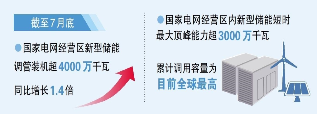在國家政策和技術(shù)創(chuàng)新驅(qū)動下,我國新型儲能呈現(xiàn)規(guī)?;l(fā)展趨勢。截至7月底,國家電網(wǎng)有限公司經(jīng)營區(qū)內(nèi)新型儲能調(diào)管裝機超4000萬千瓦,同比增長1.4倍。公司做好新型儲能并網(wǎng)及調(diào)度運行,服務(wù)新型儲能高質(zhì)量發(fā)展。
