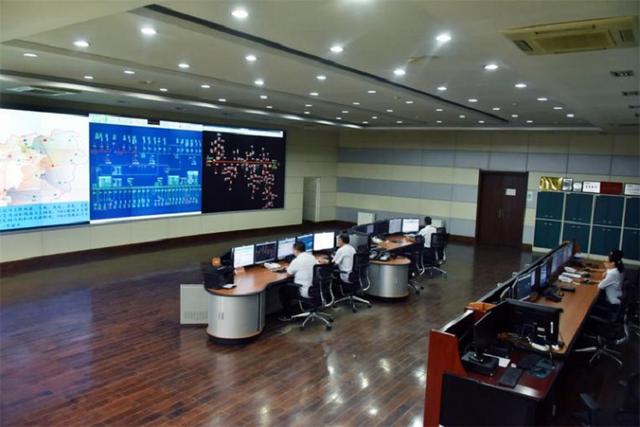 國網(wǎng)山東威海供電公司員工在調(diào)控中心觀察電網(wǎng)負(fù)荷情況,保障可靠供電。