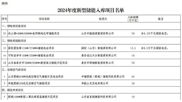 山東省能源局發(fā)布關(guān)于公布2024年度新型儲能入庫項目的公示
