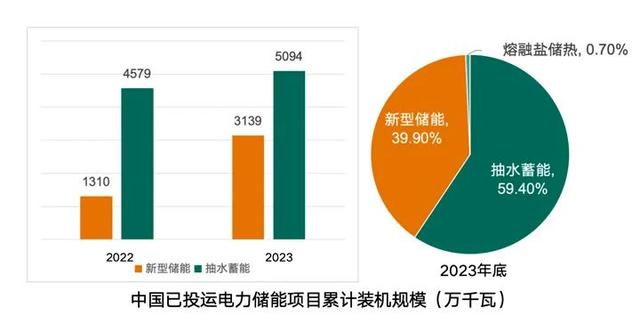 近兩年我國新型儲能(指除抽水蓄能以外,以輸出電力為主要形式的儲能技術)發(fā)展迅速,新型儲能在我國電力儲能累計裝機中的占比由2022年的16%激增至2023年的40%。