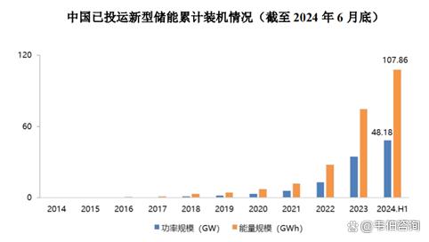 根據(jù)CNESA Data Link全球儲(chǔ)能數(shù)據(jù)庫的不完全統(tǒng)計(jì),截至2024年6月底,中國已投運(yùn)電力儲(chǔ)能項(xiàng)目累計(jì)裝機(jī)規(guī)模103.3GW(包括抽水蓄能、熔融鹽儲(chǔ)熱、新型儲(chǔ)能),同比增長(zhǎng)47%,比去年底增長(zhǎng)20%。