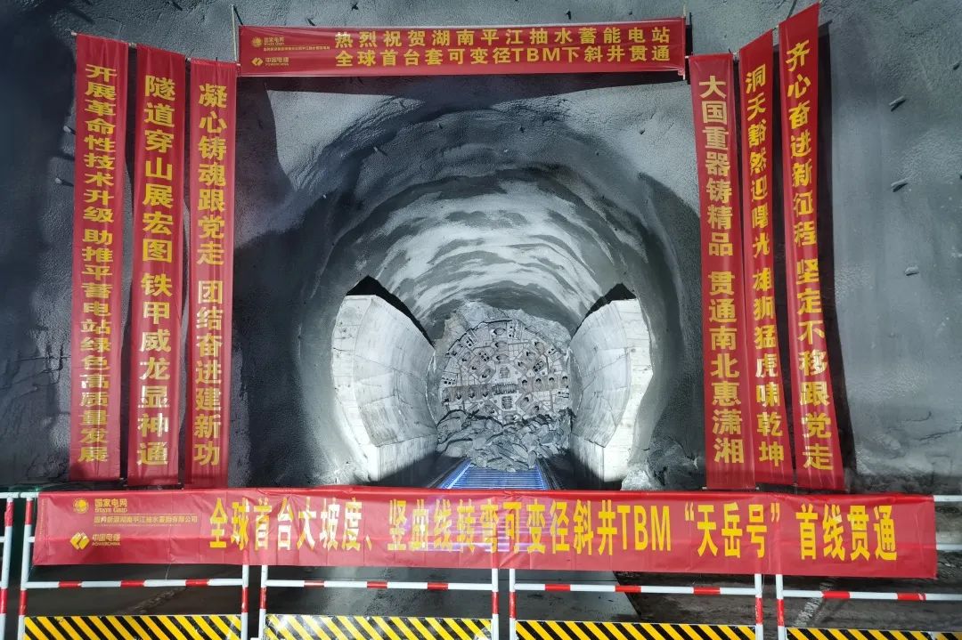 11月22日,湖南平江抽水蓄能電站1號下斜井隧洞成功貫通,標(biāo)志著全球首臺大傾角、可變徑、斜井硬巖掘進(jìn)機(TBM)“天岳號”圓滿完成1號下斜井583米的掘進(jìn)任務(wù)。