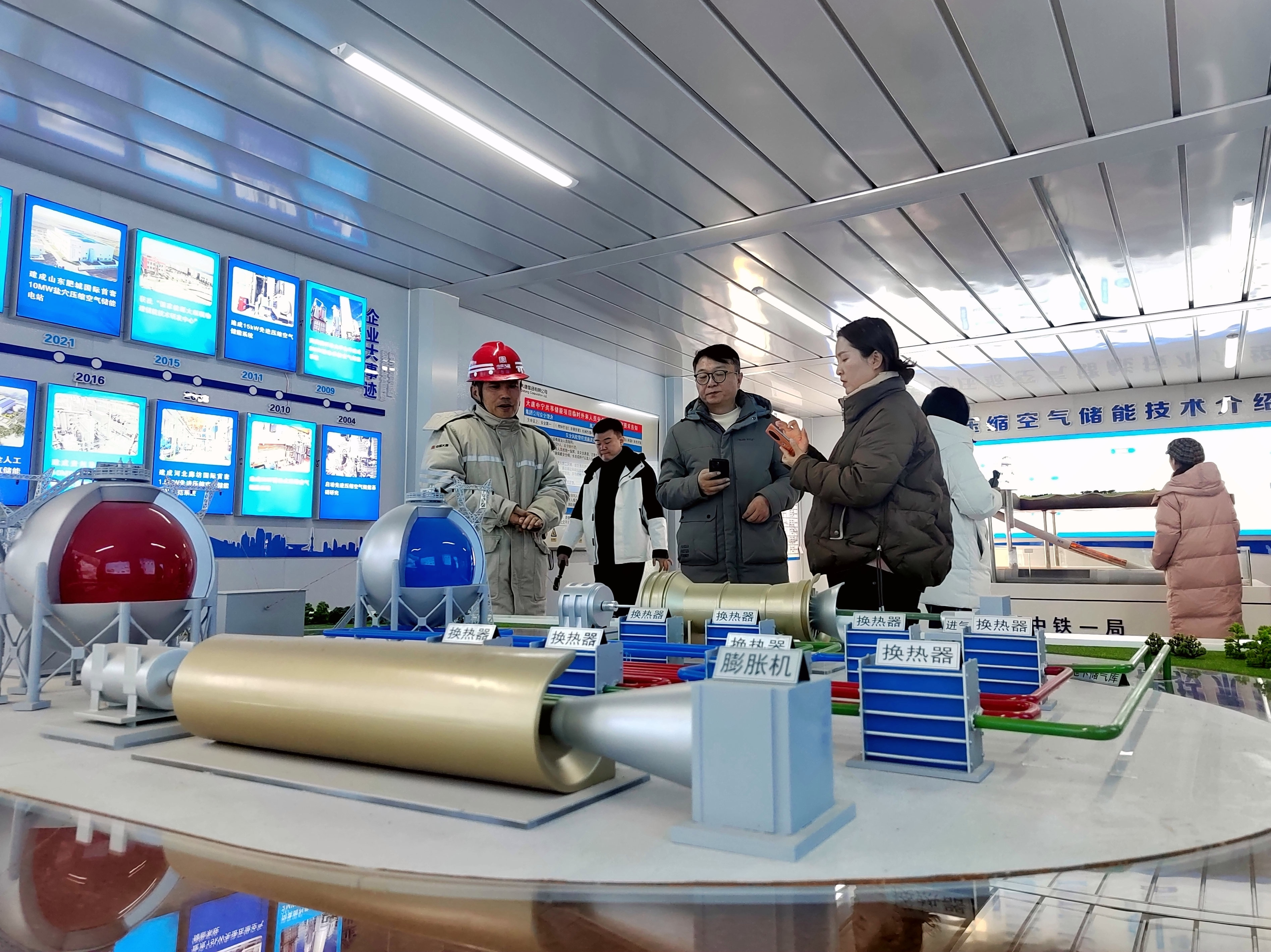 大唐中寧能源開發(fā)有限公司隸屬于中國(guó)大唐集團(tuán),是一家以電力、熱力、燃?xì)饧八a(chǎn)和供應(yīng)業(yè)為主的企業(yè)。記者抵達(dá)時(shí),正值項(xiàng)目建設(shè)的黃金季節(jié),現(xiàn)場(chǎng)塔吊林立,焊花四濺,機(jī)器轟鳴,一片繁忙而有序的景象。該項(xiàng)目是國(guó)家能源綠色低碳轉(zhuǎn)型發(fā)展關(guān)鍵核心技術(shù)攻關(guān)項(xiàng)目,也是國(guó)際首套全人工地下儲(chǔ)氣庫壓縮空氣儲(chǔ)能系統(tǒng)。大唐寧夏分公司聯(lián)合中國(guó)科學(xué)院工程熱物理研究所等國(guó)內(nèi)頂尖科研單位,歷經(jīng)一年七個(gè)月的攻堅(jiān)克難,終于攻克了選址受限、成本高昂、效率偏低等一系列技術(shù)難題,創(chuàng)新密封層設(shè)計(jì),實(shí)現(xiàn)了能量的高效安全存儲(chǔ)和利用。