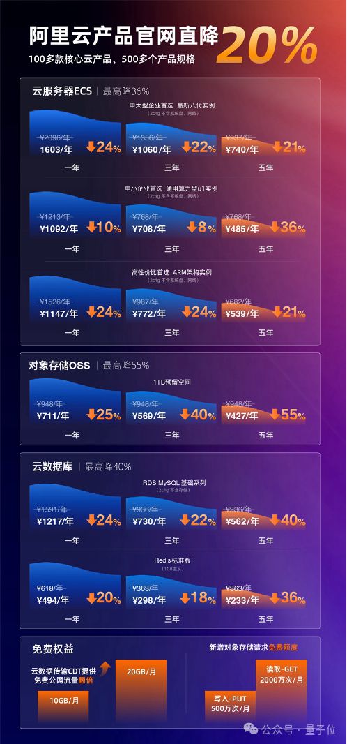 其中,云服務(wù)器ECS最高降36%,對象存儲OSS最高降55%,云數(shù)據(jù)庫RDS最高降40%。