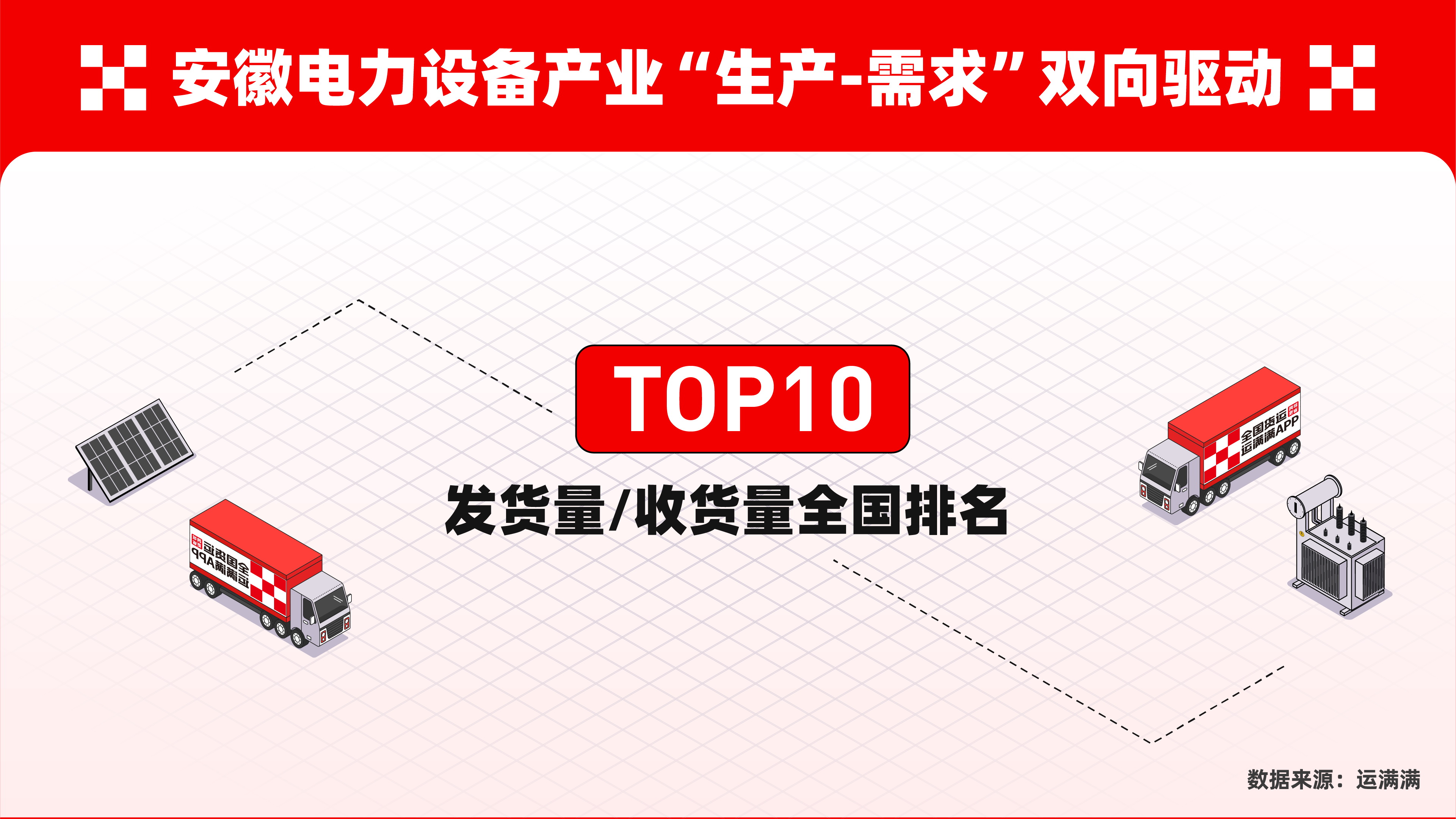 值得一提的是,運(yùn)滿(mǎn)滿(mǎn)數(shù)據(jù)顯示,安徽不僅是電力設(shè)備輸出大省,在需求端同樣表現(xiàn)強(qiáng)勁,全年電力設(shè)備收貨量排名全國(guó)第6,呈現(xiàn)出 “生產(chǎn)-需求” 雙向驅(qū)動(dòng)的產(chǎn)業(yè)特性。未來(lái),隨著安徽電力設(shè)備產(chǎn)業(yè)向高端化、綠色化邁進(jìn),對(duì)專(zhuān)業(yè)化運(yùn)輸?shù)男枨髮⑦M(jìn)一步增長(zhǎng)。例如,海上風(fēng)電設(shè)備、超高壓輸電裝置等大件貨物運(yùn)輸,亟需更精細(xì)的運(yùn)力匹配方案。對(duì)此,運(yùn)滿(mǎn)滿(mǎn)方面表示,將深化與制造業(yè)的數(shù)據(jù)聯(lián)動(dòng),推動(dòng)供應(yīng)鏈全鏈條數(shù)字化。
