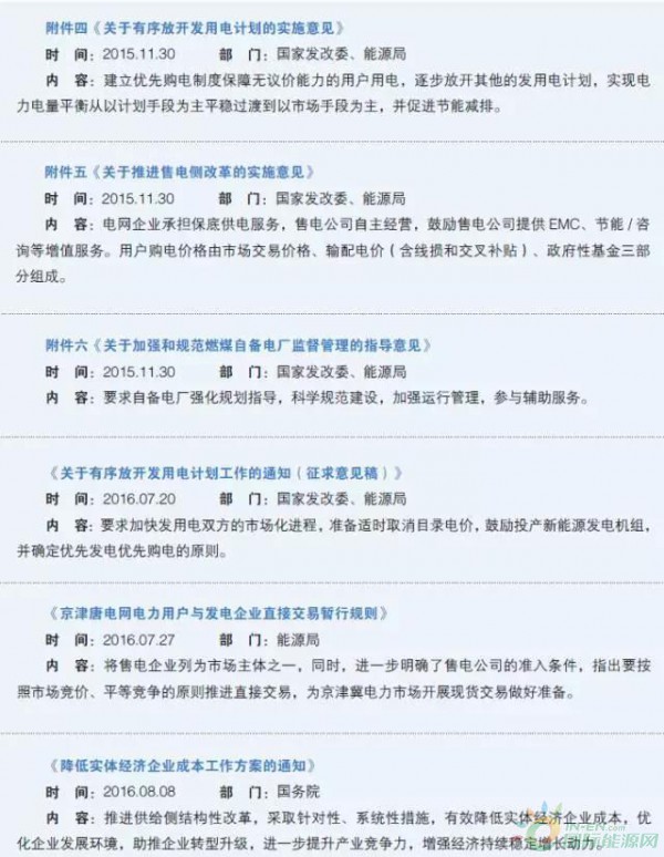 2015—2016年售電放開政策總覽
