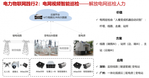 電網(wǎng)視頻智能巡檢:應(yīng)用基于華為昇騰AI芯片的Atlas系列產(chǎn)品方案,匹配桿塔、管廊、站所不同場景,通過對設(shè)備異常、環(huán)境風(fēng)險、人員違規(guī)等的AI識別,將風(fēng)險信息及時傳遞給視頻云中心,做到風(fēng)險及時發(fā)現(xiàn),幫助客戶實現(xiàn)電網(wǎng)巡檢 “由人看變成機器自動識別”,解放電網(wǎng)巡檢人力,提高運維效率,有效保障電網(wǎng)的安全穩(wěn)定運行。