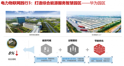綜合能源服務(wù)智慧園區(qū):華為在深圳坂田基地和東莞南方工廠打造了基于綜合能源服務(wù)的智慧園區(qū),實現(xiàn)園區(qū)能效透明可視,能耗漏洞有效挖掘,能耗異常自動告警。通過大數(shù)據(jù)&AI技術(shù)的使用,可輸出系統(tǒng)運行優(yōu)化建議,包括對空調(diào)冷機動態(tài)調(diào)優(yōu),光伏智能并網(wǎng),基于用能預(yù)測的精準購電等,優(yōu)化多能源的綜合配置能力;
