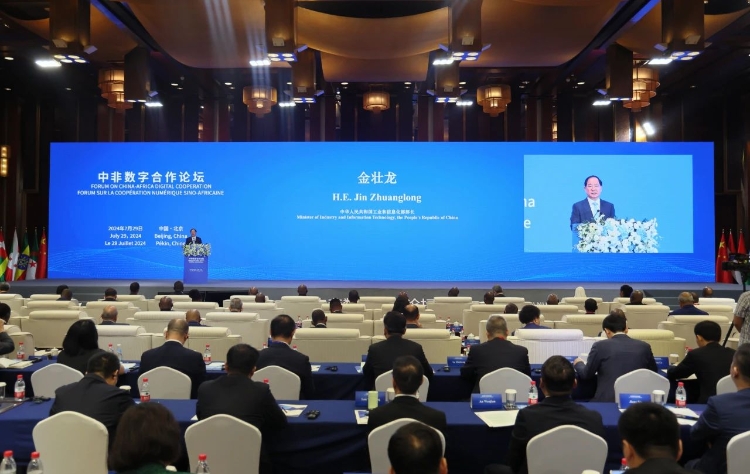 7月29日,中非數(shù)字合作論壇在北京召開,中國工業(yè)和信息化部部長金壯龍,塞內(nèi)加爾新聞、電信和數(shù)字經(jīng)濟部長阿利翁內(nèi)·薩勒,剛果(布)郵政、電信和數(shù)字經(jīng)濟部長萊昂·伊邦博出席論壇開幕式并致辭。中國工業(yè)和信息化部副部長張云明主持論壇開幕式并作閉幕致辭。