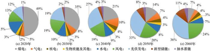 圖2 各類型電源裝機容量(2020—2060年)