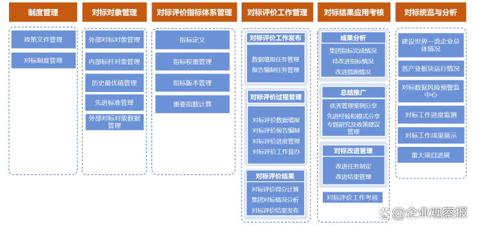 一是形成集團(tuán)世界一流企業(yè)對標(biāo)工作一體化管理。通過平臺應(yīng)用,建立形成了集團(tuán)世界一流企業(yè)對標(biāo)評價的一體化管理平臺,實現(xiàn)了對標(biāo)目標(biāo)、對標(biāo)指標(biāo)體系持續(xù)優(yōu)化,實現(xiàn)對標(biāo)工作“用戶管理、業(yè)務(wù)運(yùn)轉(zhuǎn)、數(shù)據(jù)管理、結(jié)果應(yīng)用、評價考核、持續(xù)改進(jìn)”六個全面在線,更好地發(fā)揮對標(biāo)對世界一流企業(yè)建設(shè)的重要支撐作用。