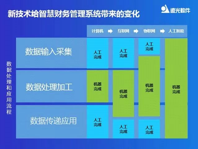 新技術(shù)會令智慧財(cái)務(wù)管理系統(tǒng)帶來哪些變化?陳婷表示改變主要體現(xiàn)在三個(gè)階段,即數(shù)據(jù)的輸入采集階段、數(shù)據(jù)的處理加工階段和數(shù)據(jù)的傳遞應(yīng)用階段。
