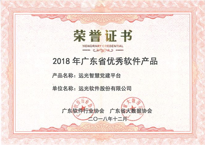 日前,廣東省軟件行業(yè)協(xié)會(huì)發(fā)布“2018年度優(yōu)秀軟件產(chǎn)品”名單,遠(yuǎn)光軟件股份有限公司自主研發(fā)的“智慧黨建平臺(tái)”憑借創(chuàng)新的管理理念,對(duì)黨建工作的精細(xì)化管理和創(chuàng)新運(yùn)用互聯(lián)網(wǎng)技術(shù)于黨建,獲得了行業(yè)和用戶的高度認(rèn)可,被授予 “2018年度優(yōu)秀軟件產(chǎn)品”稱號(hào)。