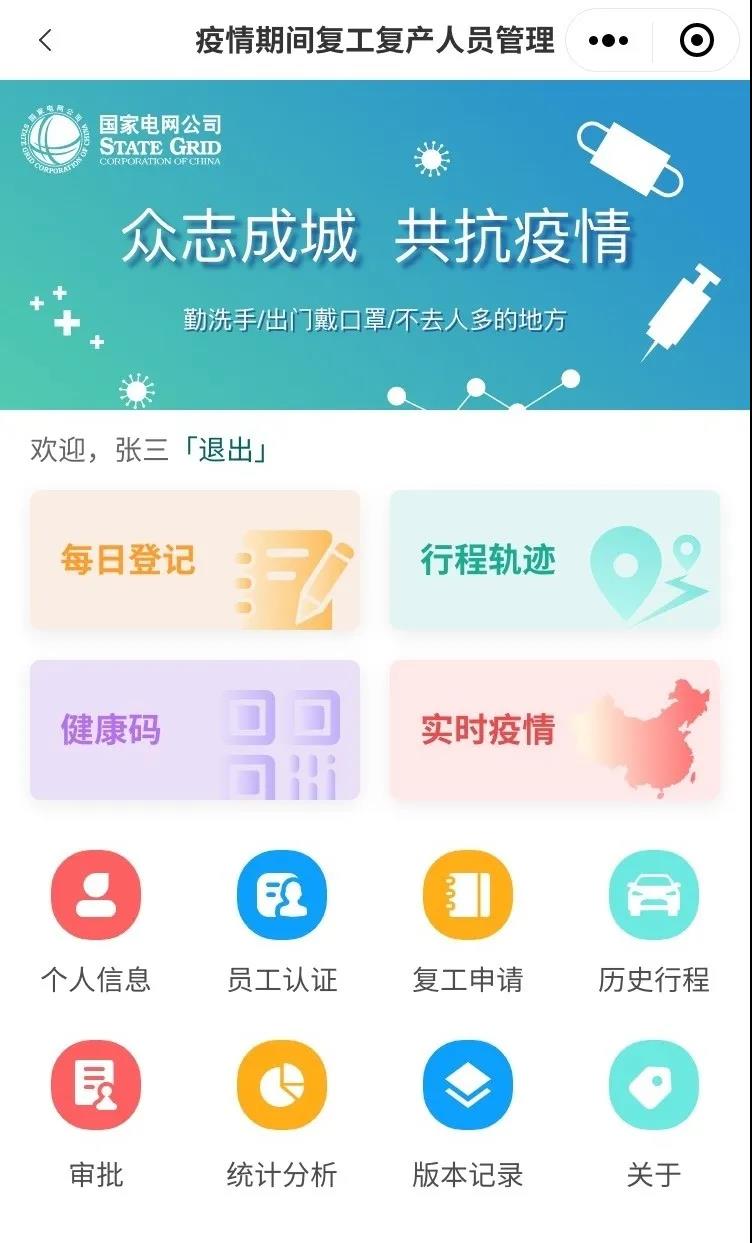復(fù)工管理應(yīng)用通過信息化手段實(shí)現(xiàn)疫情期間對(duì)人員的高效管控,有效支撐了國家電網(wǎng)公司的復(fù)工復(fù)產(chǎn)工作,保障了社會(huì)生產(chǎn)生活的用電需求。