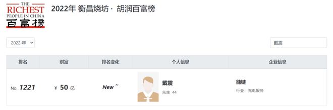 2022年衡昌燒坊·胡潤(rùn)百富榜上,戴震以50億財(cái)富列第1221位。
