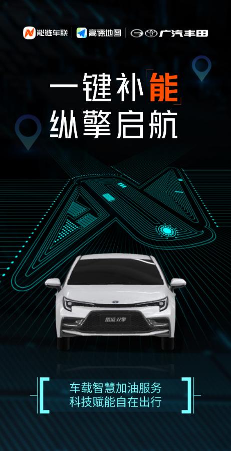 目前,能鏈車聯(lián)已將數(shù)字化加油服務搭載至廣汽豐田旗下凱美瑞、雷凌、威蘭達、C-HR、鋒蘭達、凌尚等車型之中,通過該項服務,用戶可在車載大屏一鍵點擊查詢附近油站的價格、位置等信息,并享受導航、在線支付等服務。此外,能鏈車聯(lián)通過大數(shù)據(jù)分析及智能化運營手段,結合車輛油耗、行車狀況、車主偏好等信息,依托高德汽車出行服務解決方案,可實現(xiàn)低油量提醒、精品低價油站推送等主動觸達功能,實現(xiàn)“服務找人”的智能化補能體驗。