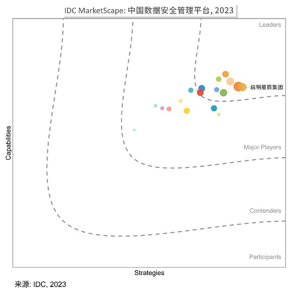 近日,IDC發(fā)布了《IDC MarketScape : 中國數(shù)據(jù)安全基礎(chǔ)設(shè)施管理平臺2023,廠商評估》報告。啟明星辰集團(tuán)位列領(lǐng)導(dǎo)者陣營,在現(xiàn)有能力、未來戰(zhàn)略和市場表現(xiàn)三大維度占據(jù)顯著優(yōu)勢,領(lǐng)航中國數(shù)據(jù)安全管理平臺市場。