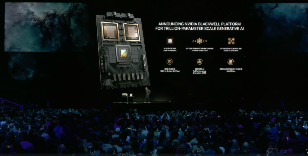 發(fā)布會(huì)上,黃仁勛宣布英偉達(dá)(NVIDIA)將推出用于萬(wàn)億參數(shù)級(jí)生成式AI的NVIDIA Blackwell架構(gòu)。搭載Blackwell技術(shù),英偉達(dá)將推出B200和GB200系列芯片。
