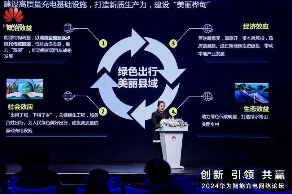 吉林省源達(dá)新能源有限公司總經(jīng)理劉丹丹發(fā)表了主題演講,探討了“構(gòu)建縣域高質(zhì)量充電基礎(chǔ)設(shè)施,打造新質(zhì)生產(chǎn)力,助力新能源汽車下鄉(xiāng)”的重要性。