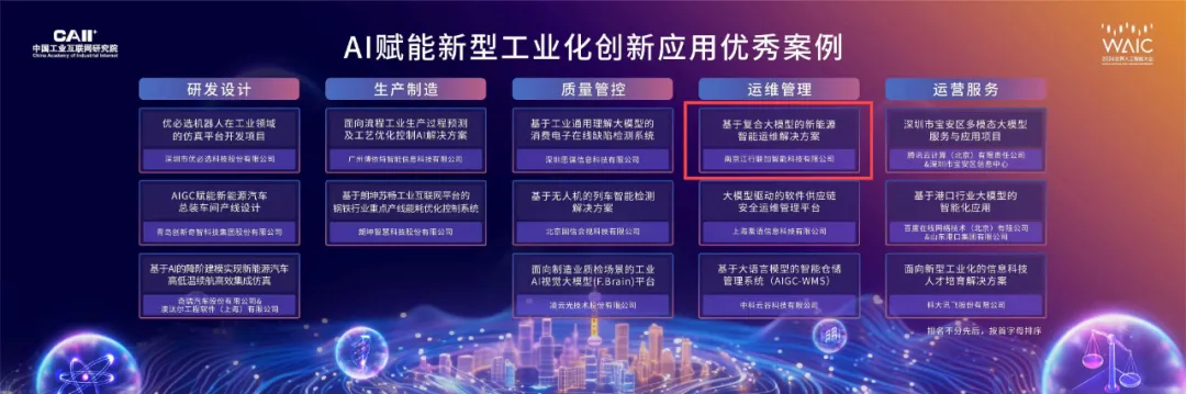 在“AI賦工業(yè),數(shù)智啟未來(lái)”人工智能賦能新型工業(yè)化主題論壇上,江行智能“基于復(fù)合大模型的新能源智能運(yùn)維解決方案”成功入選AI賦能新型工業(yè)化創(chuàng)新應(yīng)用優(yōu)秀案例。
