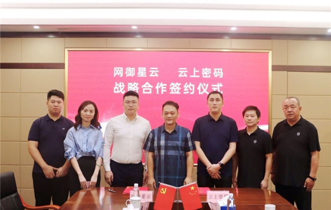 簽約儀式上,云上密碼總經(jīng)理姜林海與網(wǎng)御星云江西分公司總經(jīng)理朱祖儀簽署合作協(xié)議。雙方高層領(lǐng)導(dǎo)均對此次合作表示了高度的重視和期待。