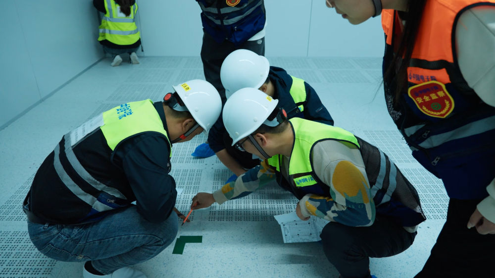 2023年,中國(guó)電子院工程師在某實(shí)驗(yàn)室項(xiàng)目檢查潔凈室建設(shè)情況