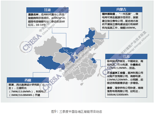 2016年三季度,中國新增儲能項目(含投運、在建、規(guī)劃中項目)中,甘肅的裝機規(guī)模最大,為400MW,占三季度新增裝機總規(guī)模的68%,并且全部應用在可再生能源并網領域。