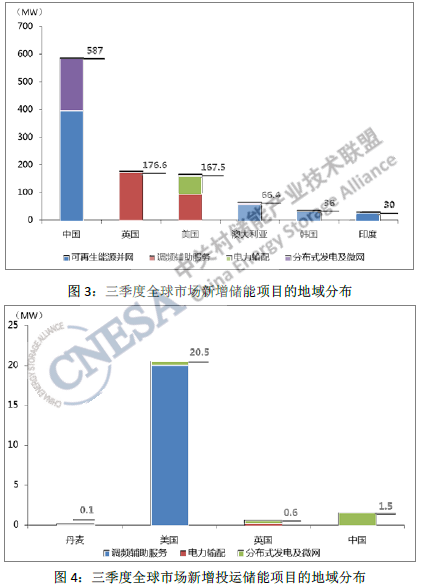 新增投運項目中,美國的裝機規(guī)模最大,為20.5MW,占三季度新增投運項目裝機總規(guī)模的90%,項目幾乎全部應用于調頻輔助服務領域。