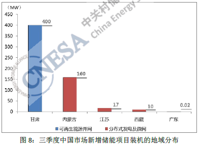 2016年三季度,中國新增投運項目3個,裝機規(guī)模1.5MW,同比增長50%,環(huán)比今年二季度下降了87%。項目全部集中在分布式發(fā)電及微網領域。