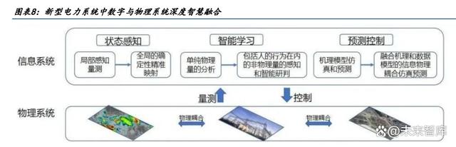 智慧融合是構(gòu)建新型電力系統(tǒng)的基礎。新型電力系統(tǒng)以數(shù)據(jù)為核心驅(qū)動,呈現(xiàn)數(shù)字與物理 系統(tǒng)深度融合特點,系統(tǒng)控制運行由“量測-控制”模式向多物理系統(tǒng)的狀態(tài)感知、智能 學習和預測控制等方式轉(zhuǎn)變。1)狀態(tài)感知:電網(wǎng)內(nèi)外參與耦合運行的物理系統(tǒng),將從局 部的感知量測,向全局的確定性精準映射轉(zhuǎn)變。2)智能學習:由于參與要素的多樣性,將 從單純物理量的分析,向包括人的行為在內(nèi)的非物理量的感知和智能研判進行轉(zhuǎn)變。3) 預測控制:將從電力物理系統(tǒng)的機理模型仿真和預測,向融合機理和數(shù)據(jù)模型的信息物理 耦合仿真預測轉(zhuǎn)變,提升隨機變量的預測精度,并應用于電網(wǎng)逐級調(diào)控和控制引導。