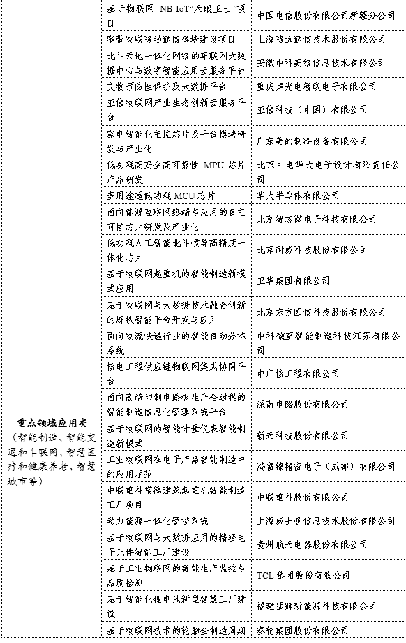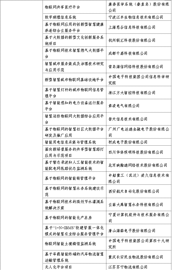 2018年物聯(lián)網(wǎng)集成創(chuàng)新與融合應(yīng)用項目名單