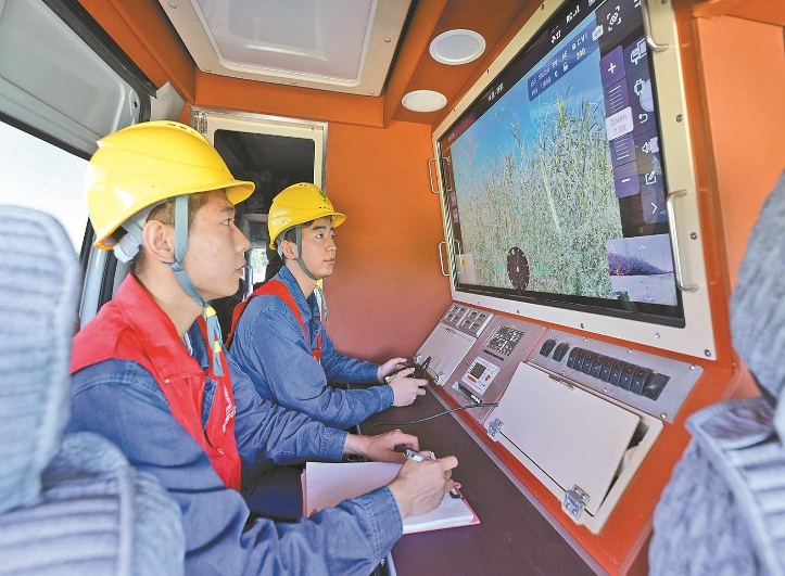 7月21日,寧夏銀川供電公司員工利用移動式無人機(jī)指揮車遠(yuǎn)程操控?zé)o人機(jī),對110千伏輸電線路開展巡檢與紅外測溫,確保迎峰度夏期間電網(wǎng)平穩(wěn)運(yùn)行。(袁宏彥 攝)