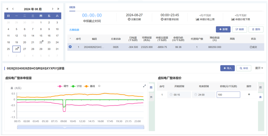 虛擬電廠(chǎng)運(yùn)營(yíng)仿真平臺(tái)教學(xué)實(shí)操頁(yè)面