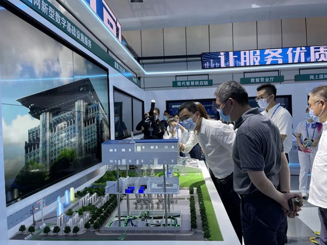 國(guó)網(wǎng)信通產(chǎn)業(yè)集團(tuán)工作人員介紹國(guó)網(wǎng)新型數(shù)字基礎(chǔ)設(shè)施服務(wù)。