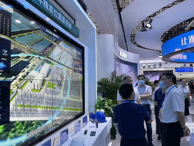 國(guó)網(wǎng)信通產(chǎn)業(yè)集團(tuán)工作人員介紹電力北斗精準(zhǔn)位置服務(wù)網(wǎng)。