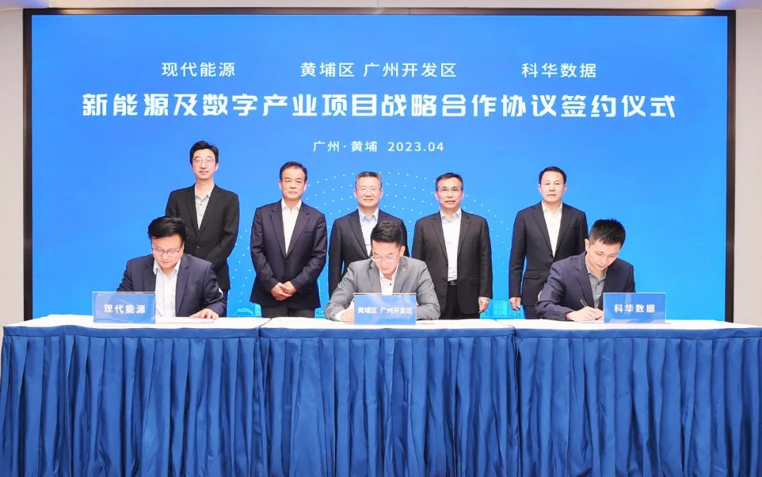 廣州市委常委、黃埔區(qū)委書記、廣州開發(fā)區(qū)黨工委書記、管委會(huì)主任陳杰,廣州開發(fā)區(qū)黨工委委員、管委會(huì)秘書長、黃埔區(qū)委辦主任董彥君,科華數(shù)據(jù)集團(tuán)董事長陳成輝,現(xiàn)代能源集團(tuán)黨委書記、董事長許鴻生等領(lǐng)導(dǎo)見證簽約。