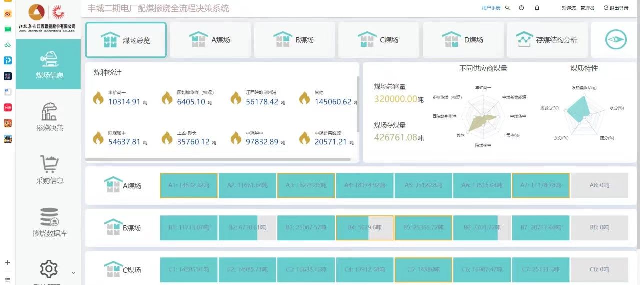 江投集團(tuán)所屬豐城電廠將配煤摻燒與燃料管理中的關(guān)鍵環(huán)節(jié)(燃料采購(gòu)、場(chǎng)存堆取、配煤摻燒)、燃燒優(yōu)化、排放達(dá)標(biāo)等因素統(tǒng)籌關(guān)聯(lián),大幅減少人員的分析和決策參與,提高了系統(tǒng)運(yùn)行效率和可靠性,最大程度提高經(jīng)濟(jì)煤種的摻燒比例。2023年1—10月,豐城電廠累計(jì)摻燒低灰熔點(diǎn)煤259.93萬噸,全年低灰熔點(diǎn)摻燒比例比2020—2022年平均值增加約10%,全年可多摻燒低灰熔點(diǎn)煤19萬噸,經(jīng)濟(jì)、社會(huì)效益顯著。