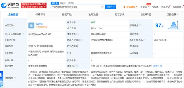 近日,中國(guó)大唐集團(tuán)數(shù)字科技有限公司成立,法定代表人為張德修,注冊(cè)資本10億人民幣,經(jīng)營(yíng)范圍含人工智能行業(yè)應(yīng)用系統(tǒng)集成服務(wù)、人工智能應(yīng)用軟件開(kāi)發(fā)、網(wǎng)絡(luò)與信息安全軟件開(kāi)發(fā)、數(shù)字技術(shù)服務(wù)、以自有資金從事投資活動(dòng)等。