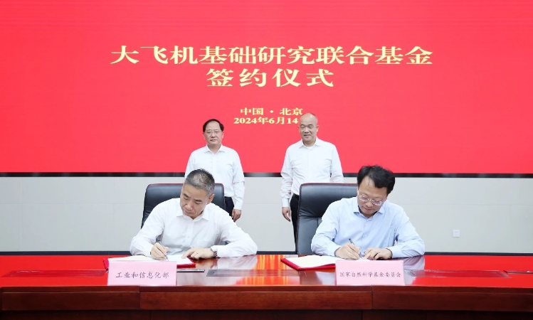 6月14日,工業(yè)和信息化部、國家自然科學基金委員會簽署合作協(xié)議,共同設立大飛機基礎研究聯(lián)合基金。工業(yè)和信息化部黨組書記、部長金壯龍,國家自然科學基金委員會黨組書記、主任竇賢康,工業(yè)和信息化部黨組成員、副部長辛國斌,國家自然科學基金委員會黨組成員、副主任王希勤出席活動。