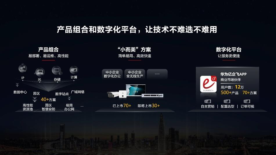 同時(shí),我們還打造了一站式的數(shù)字化平臺(tái),如華為億企飛APP。客戶和伙伴們可以通過這個(gè)平臺(tái),獲取豐富的產(chǎn)品庫、方案庫、案例庫等資源,以便更好地使用數(shù)字化產(chǎn)品和方案。