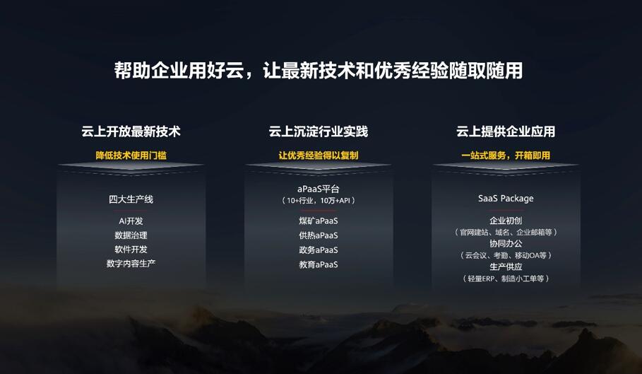 為了讓企業(yè)實(shí)現(xiàn)從“上好云”到“用好云”的升級(jí),華為云提出了“一切皆服務(wù)”的理念。我們把AI、軟件開發(fā)、數(shù)據(jù)治理和數(shù)字內(nèi)容生產(chǎn)等最新技術(shù),以及集成開發(fā)工具,都開放在云上,企業(yè)可以隨取隨用,同時(shí),我們提供相應(yīng)的咨詢服務(wù),幫助企業(yè)用好這些技術(shù)和能力。