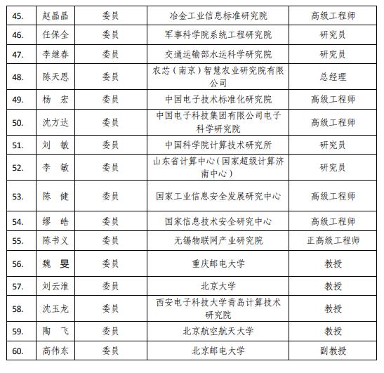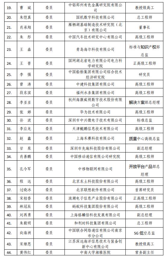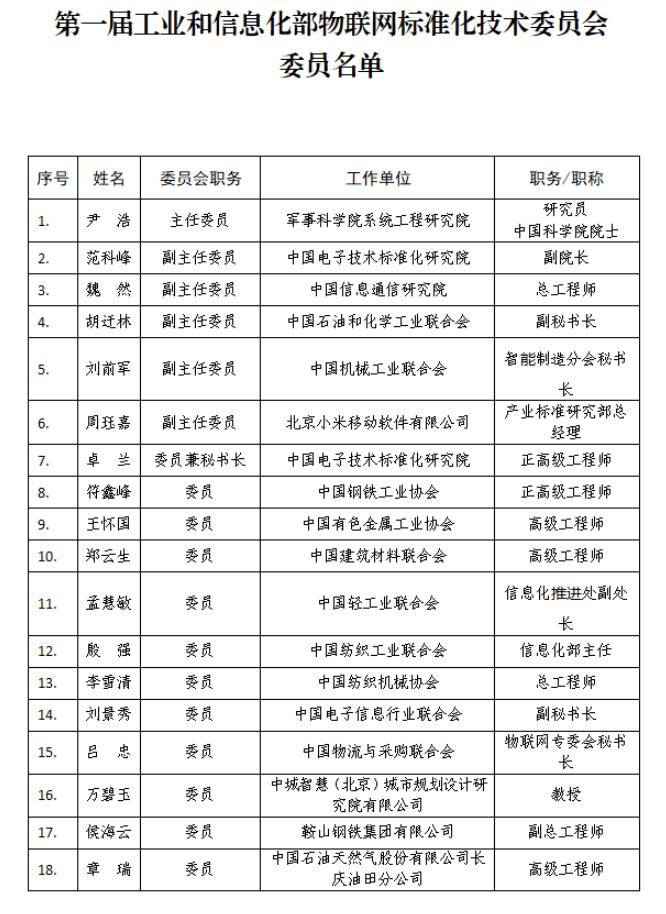 附件:第一屆工業(yè)和信息化部物聯(lián)網(wǎng)標準化技術(shù)委員會委員名單