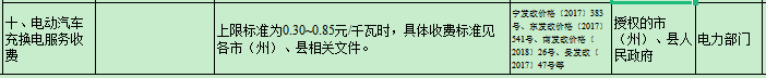各地按照定價(jià)權(quán)限制定電動(dòng)汽車充換電服務(wù)費(fèi)標(biāo)準(zhǔn)0.50~0.70元/千瓦時(shí)(不含電費(fèi))。